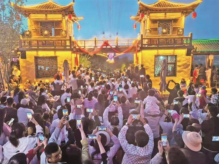 踏入油嘴湾生态文化景区,白天,阳光洒在山水间,游客在七彩滑道、高空秋千等新奇刺激的项目中感受着乡村旅游的别样乐趣。景区内,村民们现场制作的洋芋酿皮、焜锅馍馍等特色美食,引得游客纷纷驻足品尝。夜晚,沉浸式演艺精彩上演,传统歌舞、民俗故事在舞台上生动展现,给景区增加了浓浓的文化味。近期,景区白天接待游客约3500人次,夜晚接待游客约4500人次。