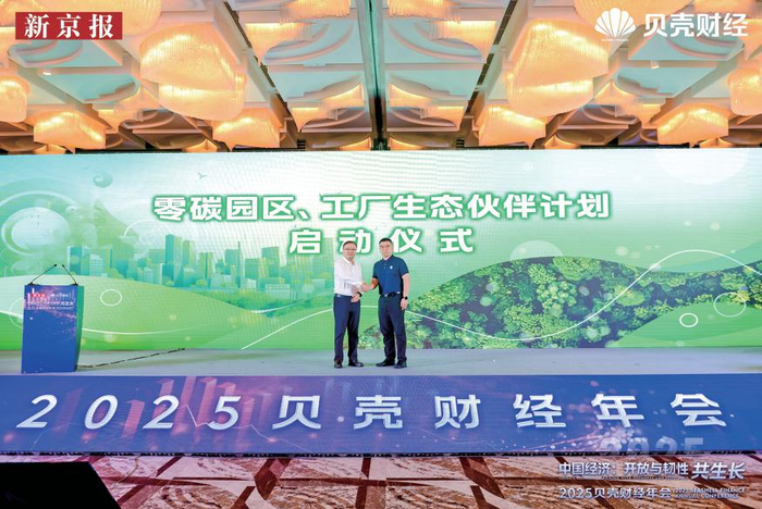 贝壳财经年会上,新京报社副总编辑孙浩、中国节能协会副秘书长兼碳中和专业委员会秘书长张军涛作为双方代表同步启动了“零碳园区、零碳工厂生态伙伴计划”,该计划旨在整合政策、技术、资本与媒体资源,为零碳实践提供全方位支持。下一步,“零碳园区、零碳工厂生态伙伴计划”会通过媒体传播、资源整合、案例推广等方式,推动更多园区和工厂加入零碳行列。