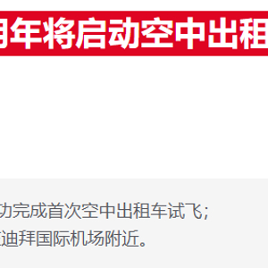 根据计划,2026年迪拜将启动空中出租车商业运营,首个运营站点将设在迪拜国际机场附近。