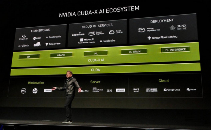 像奠定英伟达在AI霸主地位的CUDA(通用计算架构)平台,就是黄仁勋在华尔街一边倒的质疑和否定中坚持下来的。