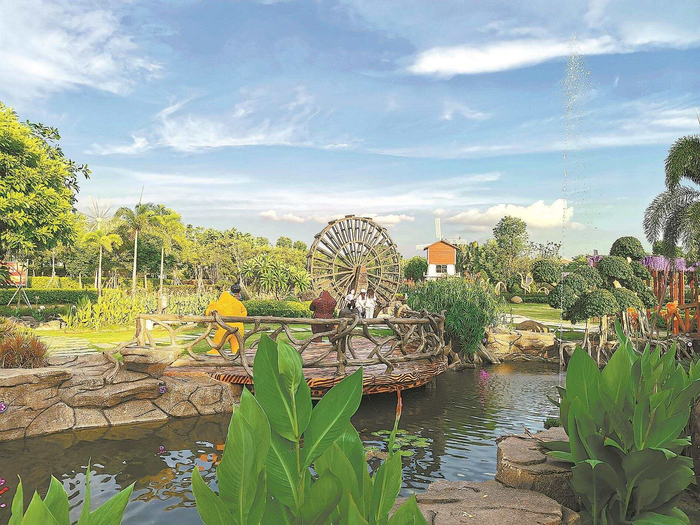 曾几何时,这里工业废料堆积、臭气熏天。改变始于2017年。村党委凝聚党员、村民、返乡大学生、共建单位等力量,清出2.5万多平方米土地,巧修溪流,并以木结构长廊、大风车、木水车、小桥流水与泥塑群加以点缀。引入的120多种植物挂上科普牌,昔日垃圾场蝶变为兼具生态与科普功能的“塘埔湿地公园”。