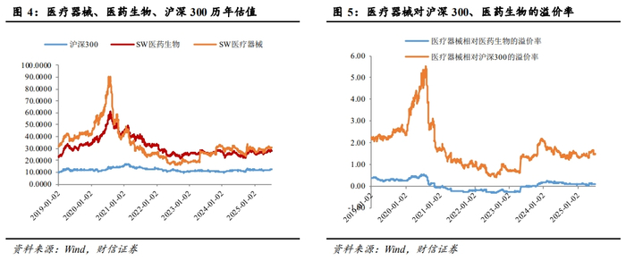 截至2025年07月07日,医疗器械板块PE(TTM,整体法,剔除负值,下同)均值为30.60倍,在医药生物6个二级行业中排名第3位,申万医药生物板块PE为28.04倍;医疗器械板块相对申万医药生物行业的平均估值溢价9.11%,相较于沪深300、全部A股溢价164.74%、104.53%。