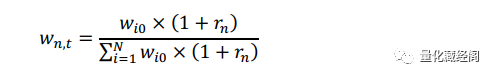 假设当前日期为日,指数公司最近一次公布成分股权重的日期为,且该日成分股的权重为。记到期间,个股的非复权涨跌幅为,那么当前日期个股的权重可以表示为: