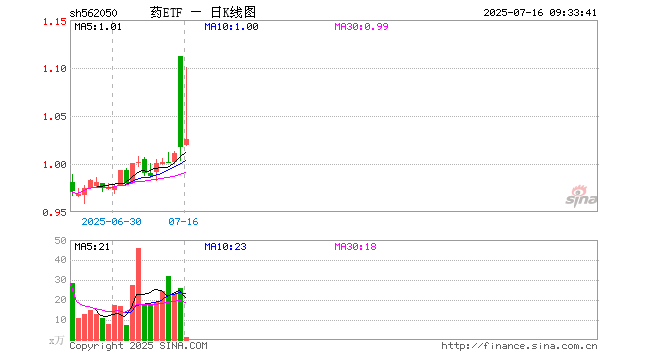 药ETF(562050)开盘涨0.20%,重仓股恒瑞医药涨0.75%,片仔癀跌0.03%