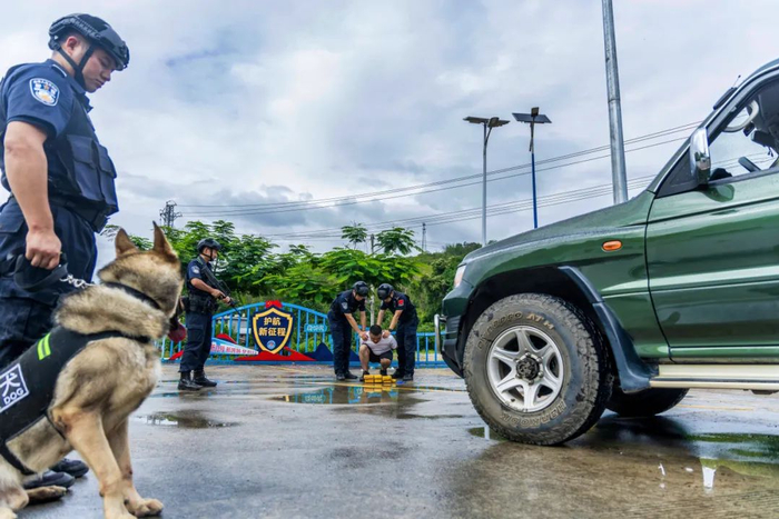 6月5日,云南西双版纳大开河边境检查站移民管理警察对查获毒品案件进行现场还原。