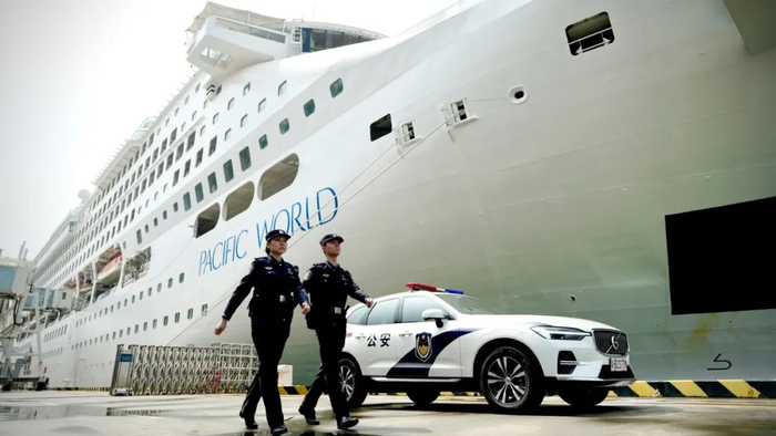 4月28日,广东深圳迎来年内首艘访问港邮轮和平之船环球邮轮——“太平洋世界号”。深圳边检总站蛇口边检站对1500余名旅客开展随船查验,通关时间较原来缩短三分之一。
