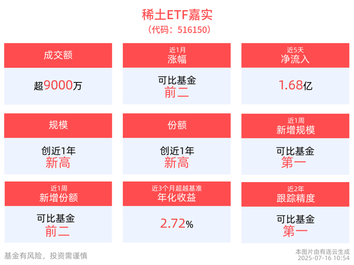 6月稀土出口量同比增长60%,稀土ETF嘉实(516150)调整蓄势,单日“吸金”1.55亿元