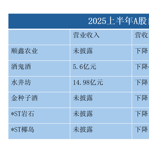 顺鑫农业、酒鬼酒、水井坊等白酒上市公司上半年业绩惨淡,营收普遍下降