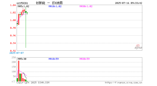 创业板新能源ETF鹏华(159261)开盘涨0.00%,重仓股宁德时代涨0.28%,汇川技术涨0.19%