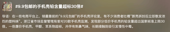 这两天,一条 “ 9.9 包邮手机壳铅含量超标 30 倍 ” 的热搜,给我人看麻了!