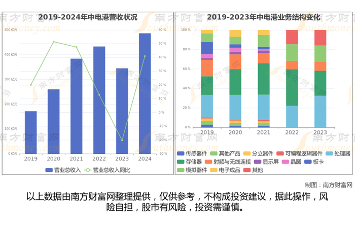 数据显示(如上图),中电港2024年营业收入为486.39亿,同比增长40.97%,近5年复合年增长率16.92%。