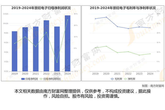 数据显示(如上图),景旺电子公司2024年营业收入126.59亿,同比增长17.68%,近5年复合年增长率(CAGR)15.7%。
