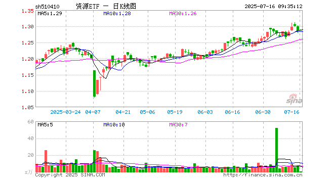 资源ETF(510410)业绩比较基准为上证自然资源指数收益率,管理人为博时基金管理有限公司,基金经理为王祥,成立(2012-04-10)以来回报为28.79%,近一个月回报为2.39%。