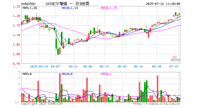 1000ETF增强(560590)涨1.25%,半日成交额82.63万元