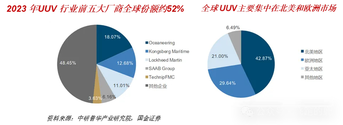 这行当的竞争格局很集中,主要玩家都扎堆在北美和欧洲。就说海上能源领域的无人潜水器,全球前五家厂商直接包圆 52% 的市场份额,Oceaneering 和 Kongsberg Maritime 一马当先,分别拿下 18.07% 和 12.68% 的份额。2023 年北美市场占了 42.87%,欧洲也占 29.64%,妥妥的主力战场。