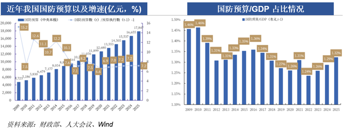 这次国防军费涨得比之前想的稍多些,新一轮军备发展的热度要起来了。2025 年国防支出,比去年增长 7.2%达1.78万亿,这比之前估计的 6%-7% 略高一点,和 2024 年的增速差不多。