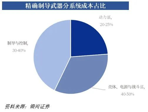 成本方面,制导系统占比最高,大多超 40%,先进空空导弹里甚至超 70%;稳定控制部分占 15%-25%,引信和战斗部占 10%-20%,远火的成本占比和导弹差不多。