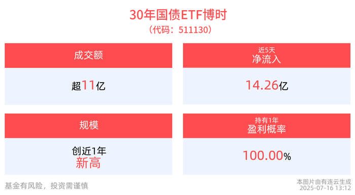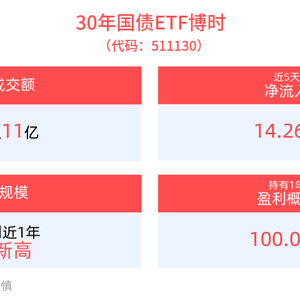 30年国债ETF博时(511130)最新规模达91.42亿元,再创新高,近5日“吸金”14.26亿元