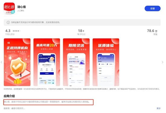 最近,随心借APP在应用商店创下了百万级的下载量,其中华为商城下载量达到78.6万,小米商城下载量达到41万,仅这两家平台下载量就过百万次,而且下载量还在持续增长。