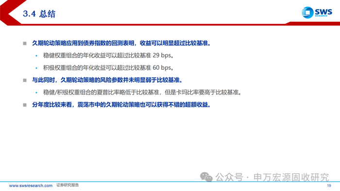 3)多维度综合比较,久期轮动策略的风险参数也与比较基准相当。