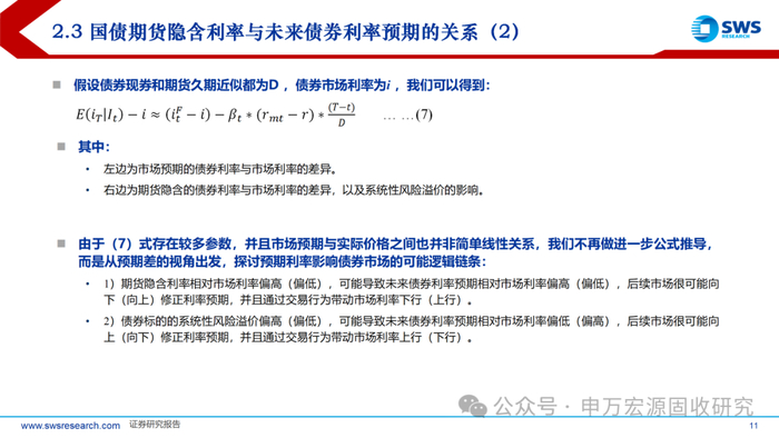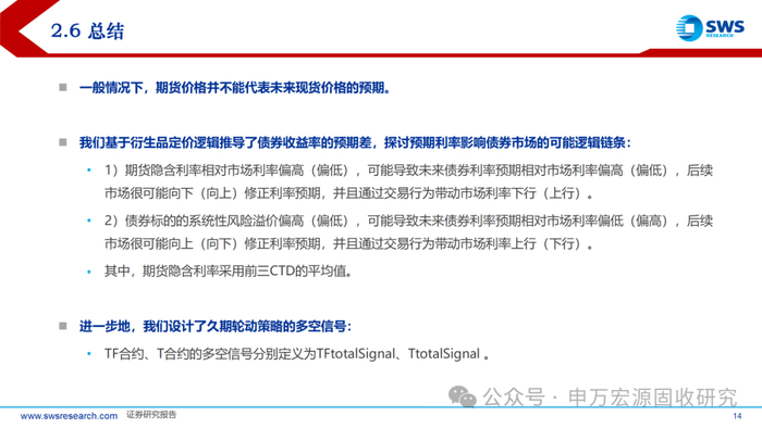 2)我们基于衍生品定价逻辑推导了债券收益率的预期差,探讨预期利率影响债券市场的可能逻辑链条,并在此基础上设计了久期轮动策略。