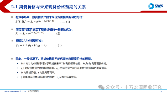 1)与通常认知有所差异的是,一般情况下,期货价格本身实际上并不能代表未来现货价格的预期。