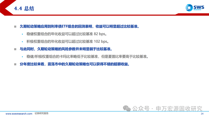 久期轮动策略应用到利率债ETF组合的回测表明,收益可以明显超过比较基准。