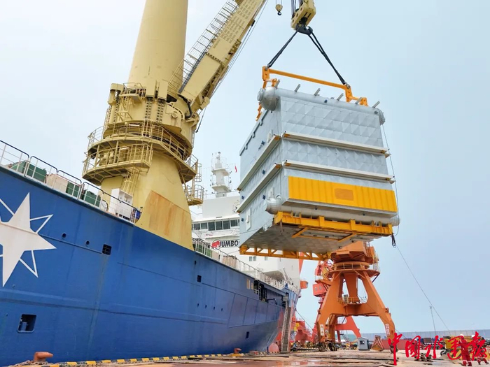 据了解,“尊宝动力”轮配有两台1500吨起重能力的桅杆式吊机,双机联合起重能力达3000吨,是全球重吊船领域中自主吊装能力最强的船舶之一。本航次在烟台港蓬莱港区共装载23件特种锅炉模块及配件,货物抵达卡塔尔后将用于当地发电厂工业焚化炉的工业废气控制,是消除有害气体排放的“利器”,为推进海外环保基础设施建设、助力绿色低碳发展再添生动范例。