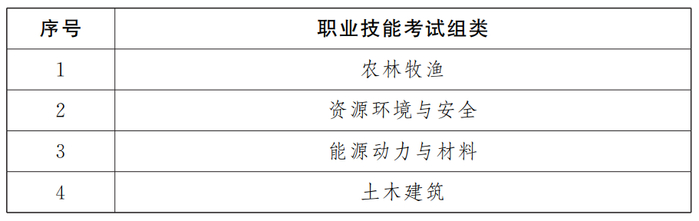 根据《职业教育专业目录》,将职业技能考试划分为19个组类,对应19个专业大类。