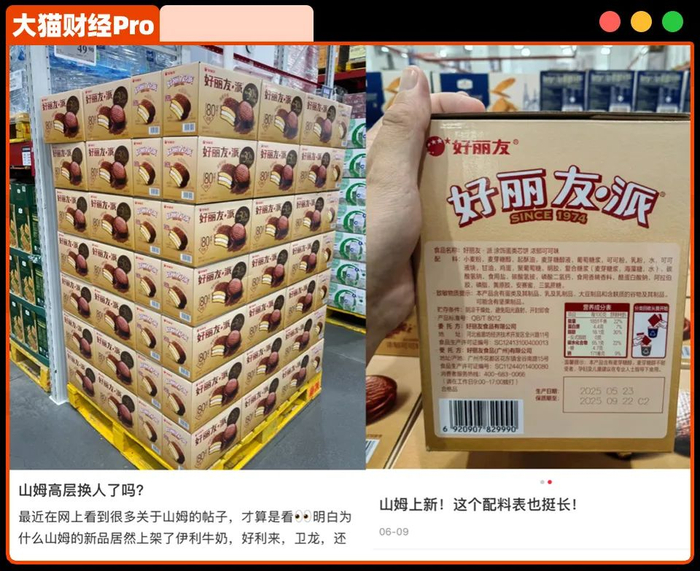 “好丽友进山姆”就成了一种信号,高端消费向大众市场妥协,那么对于860万会员们来讲,消费又降级了,精致的生活没了,会员制构建的壁垒被冲击。