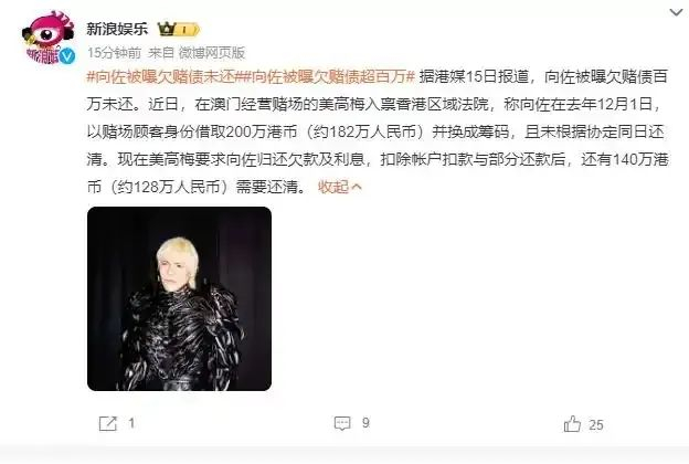 香港娱乐圈这是怎么了?先是英皇欠下166亿巨债,如今向佐又深陷赌债风波。希望曾经的辉煌与荣耀还能重现!