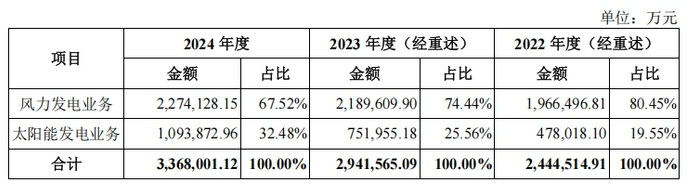 招股说明书显示,2024年,华电新能实现营业收入339.68亿元,同比增14.83%。其中风电营收227.41亿元,太阳能发电业务营收109.39亿元。