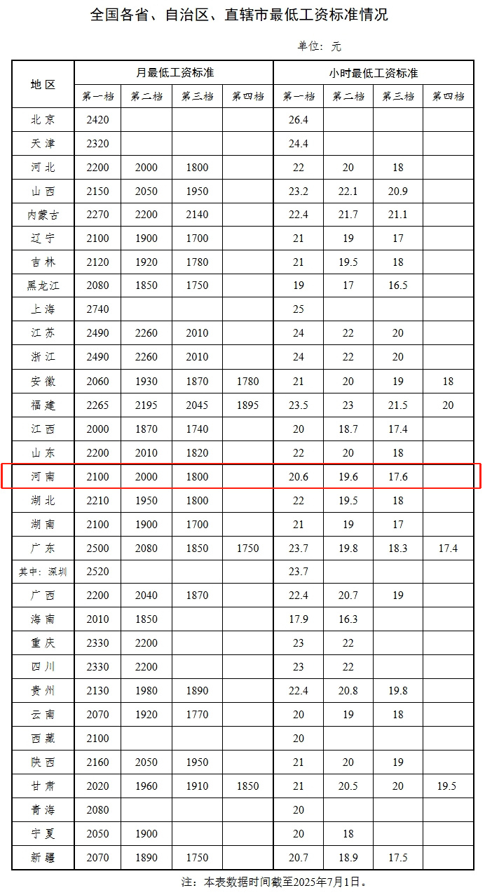 最新!各地最低工资标准出炉