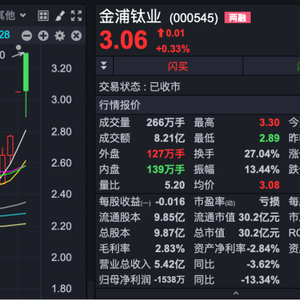 7月16日,金浦钛业股价早盘一度冲抵3.3元/股,达近年高点,全天振幅超13%。该股昨天(7月15日)复牌后一字涨停。