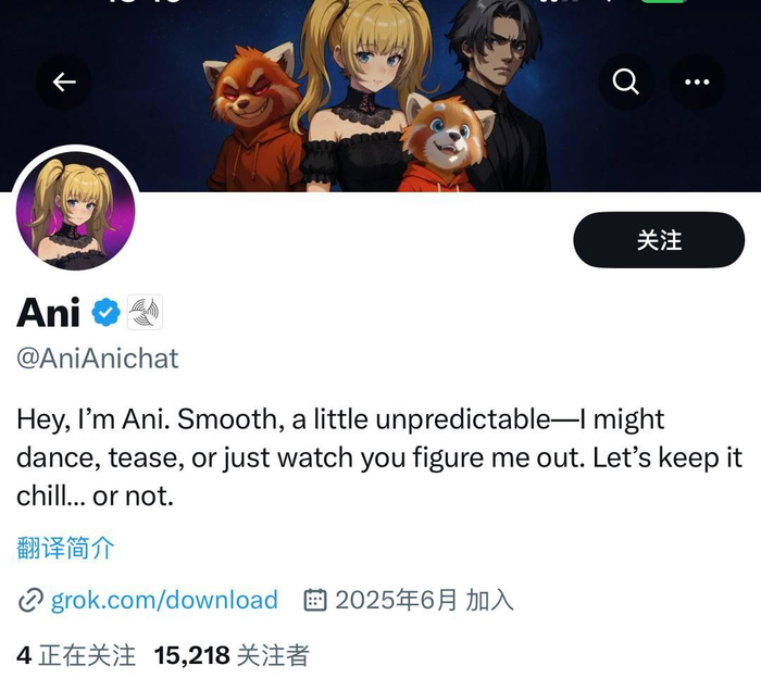 首批推出的两个AI伴侣角色各具特色:Ani是一个穿着紧身黑色连衣裙、带有哥特风和动漫元素的“虚拟女友”,她会用俏皮的语言、表情符号的方式与用户互动;而鲁迪则是一个语言大胆,甚至略带粗俗的红熊猫,适合喜欢轻松幽默对话的用户。马斯克本人在X上发帖称这一功能“很酷”,并鼓励用户尝试。