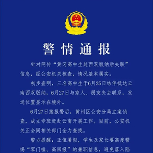 湖北省黄冈市黄州区公安分局7月16日发布警情通报,针对网络流传“黄冈高中生赴西双版纳后失联”信息,经公安机关核查,情况基本属实。