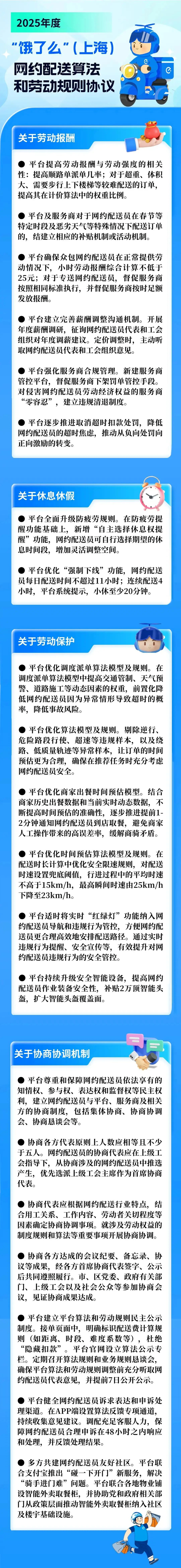 饿了么也在持续推进骑手的“新职伤”保险,同时与骑手代表签订了《2025年度“饿了么”(上海)网约配送算法和劳动规则协议》,事关骑手的多项权益。