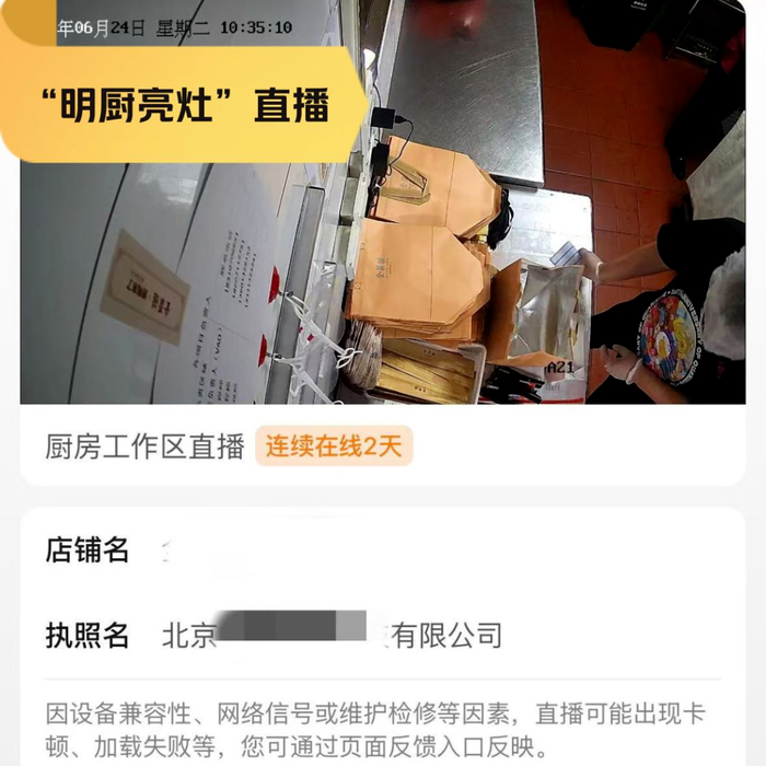 消费者可以通过美团APP查看新型卫星店的后厨实时画面,“云体验”食材处理全过程,增强信任感。消费者若发现商家的不规范行为,可一键反馈,平台会实时跟进处置。