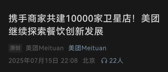 截至2025年7月,已有外婆家、海底捞、老乡鸡、全聚德、东来顺等800多个头部餐饮品牌与美团合作,共建卫星店超过5500家。
