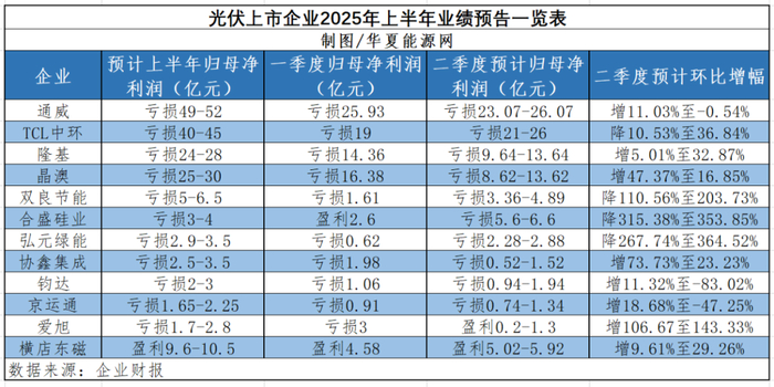 随着上半年业绩预告披露完毕,光伏上市公司的真实经营情况显出大概轮廓。