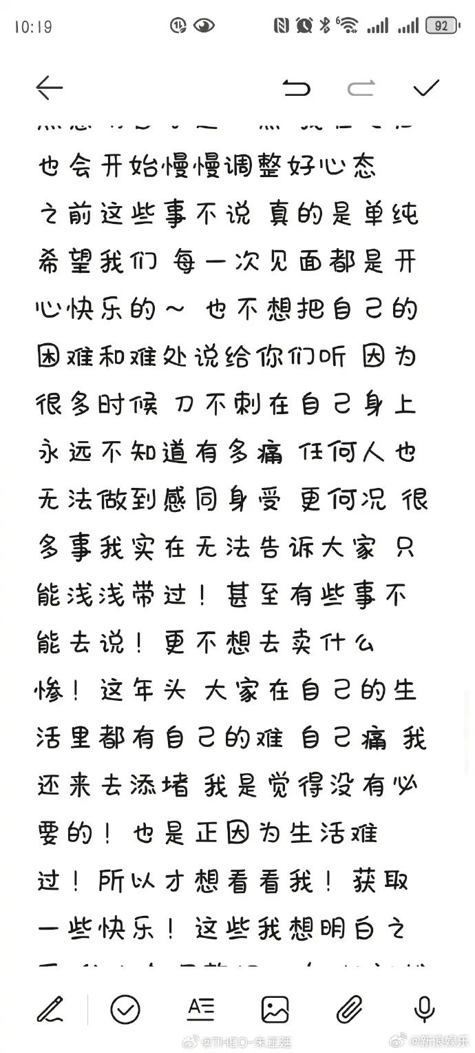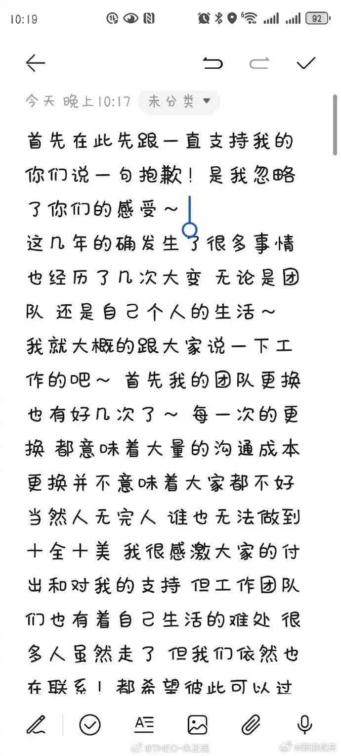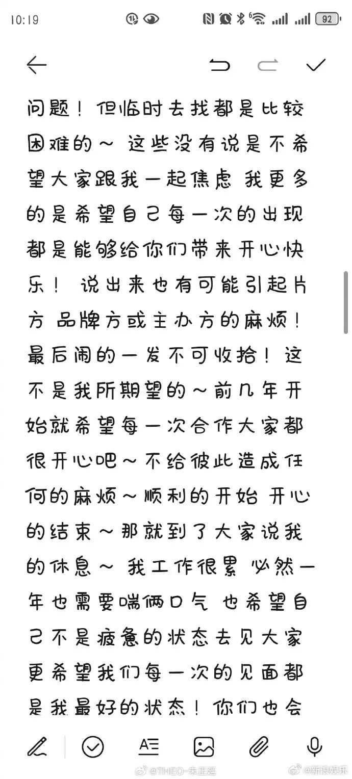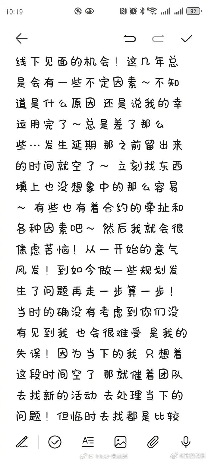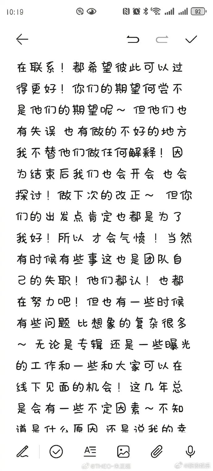 稍晚,他在超话给粉丝写长信道歉,他称已经换了好几次团队,也理解粉丝对团队有些气愤:“他们都认,也都在努力”;出现一些不可控的情况时自己也会焦虑、情绪出现问题,所以一直在空白的时间里充实自己。