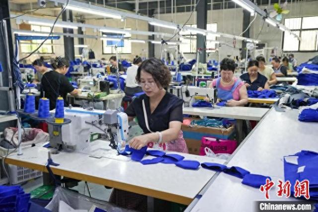 夏季,河北省邯郸市冀南新区光禄镇,一家家劳动防护用品公司正在忙碌。据邯郸冀南新区劳保用品行业协会统计,有着“中国劳保产业之乡”之称的光禄镇,有劳保从业人员10万余人,2024年劳保手套产量达到95亿双,产值60亿元,其中4.75亿双由厂家直销进入东南亚市场。图为7月15日,河北弘润服饰有限公司的工人正在赶制来自海外的订单。 杜昕雨 摄