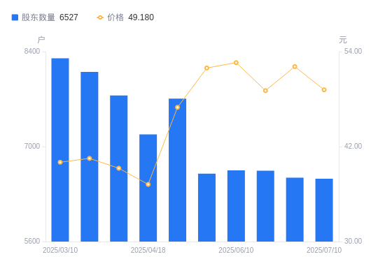 近一年(2024年7月10日至2025年7月10日),凯迪股份A股股东户数从8491户,减低至6527户,降幅23.13%,区间股价上涨67.25%。
