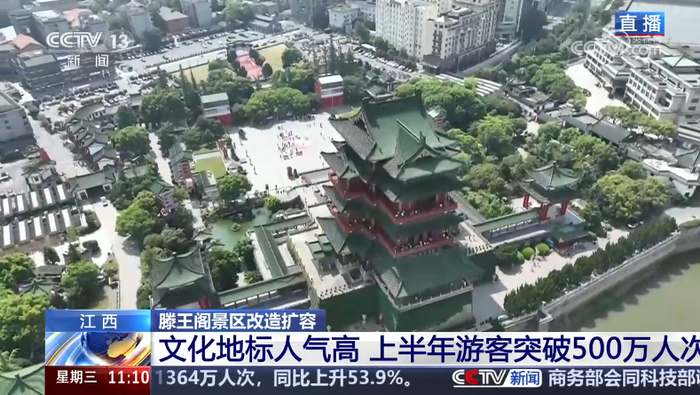 总台记者易文韬:我现在正在江西南昌的滕王阁核心景区。在今年伊始,滕王阁就已经焕然一新,以全新的姿态迎接八方来客。作为南昌市的文化地标,在今年上半年,整个滕王阁旅游区的游客总体数量就已经突破了500万人次大关。