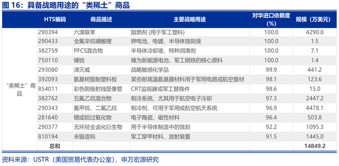二、除稀土外,海外对华还有哪些“极高依赖”商品?化学品、矿物金属、纺织服装等
