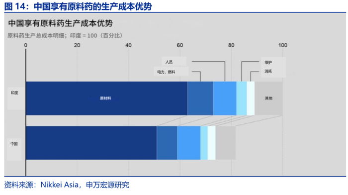 进一步来看,美国对华“完全依赖”的20个商品具备一定的战略性和难替代性。譬如,磷酸酯(如HTS293153和HTS293147)、氟化物质和含镍电极材料(如HTS290433、HTS382759和HTS750110)是锂电池中的关键添加剂和电极材料,且中国在这些材料的全球产量中占据领先地位。这使得中国拥有完整的锂电池产业体系和成熟的生产技术,其他国家在短期内难以实现替代。此外,一些关键原料药,如格鲁米特、右丙氧芬和3-奎宁环醇,中国具有显著的成本优势。其他国家,即便是原料药成本很低的印度,也很难在短期内形成规模效应。