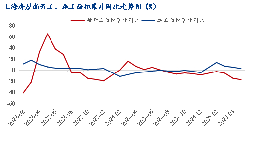 2025年1-5月,上海房屋新开工面积累计663.62万平方米,同比下降17.1%;累计施工面积15151.82万平方米,同比小幅增长2.9%。上半年新开工面积降幅持续扩大。另一方面,经历行业部分企业出清后,在建项目资金与进度状况有所改善,施工面积同比增加,带动房地产项目混凝土用量降幅收窄。