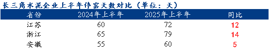 鉴于长三角水泥企业在沪市场份额高达84%,其供应状况对上海市场影响显著。2025年上半年,长三角地区水泥企业普遍延长停窑时间:江苏增加12天,浙江增加14天,安徽增加5天。