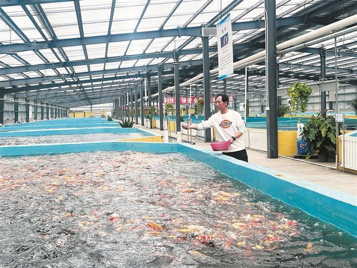 在阿拉尔市长鑫渔业有限责任公司盐碱水工厂化养殖繁育基地,工作人员为鱼苗投喂饲料(资料图片)。近年来,该公司依托一师十六团盐碱水资源,建成盐碱水循环利用系统,探索形成了卓有成效的盐碱水养殖模式。依托阿拉尔市长鑫渔业有限责任公司、阿拉尔市锦鸿水产养殖有限公司等水产养殖企业,十六团积极打造南疆鱼苗良种繁育推广基地。 兵团日报全媒体记者 赵优 摄