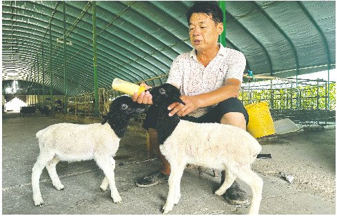 走进聊城市阳谷县鸿运牧业养殖场,循声望去,星星点点的黑山羊仿佛一粒粒黑色的珍珠,遍布其间。有“山东第一羊”美誉的鲁西黑头羊,近年来在这里养得越来越多。7月14日下午,在鸿运牧业的黑头羊产房里,公司总经理薛景霞的父亲薛明荣正在为刚出生不久的羊羔喂奶,两只可爱的黑头羊羊羔看见薛明荣拿着奶瓶走过来,就开始“咩咩”叫个不停。“如果是一胎多羔,母羊喂不过来,我们就给这些小羊羔喂奶,喂的奶都是牛奶,一只羊羔每次喂一奶瓶。”薛明荣说,照顾羊羔就和照顾小孩一样,比较费心费力。